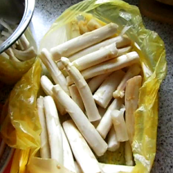 - Ist die Schnittkante trocken, aufgeplatz und/oder gelb verfärbt und tritt auch beim Drücken auf das Spargelende kein Saft aus, handelt es sich nicht um frische Ware.